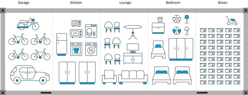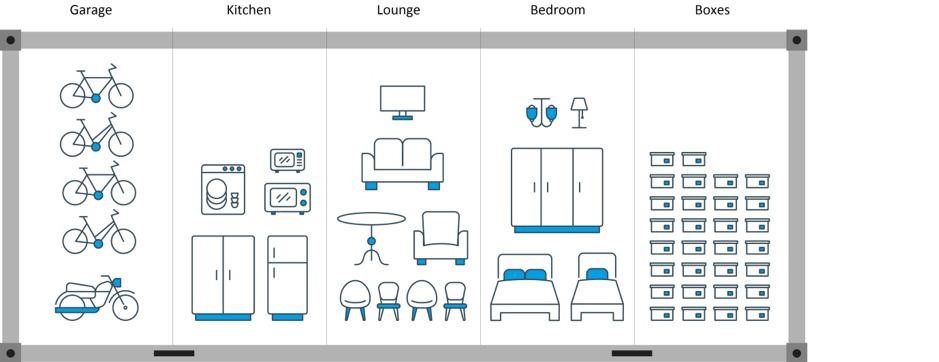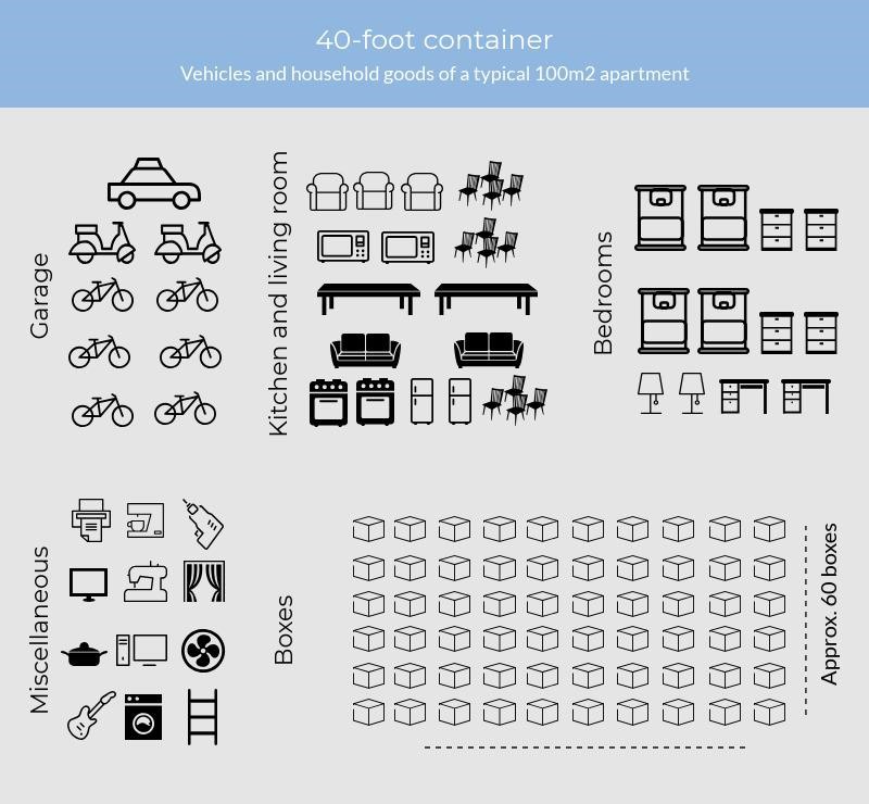 As you can see, a 20ft container has a total capacity of 33 cubic metres (cbm), however in reality there is usually only around 25 cbm of usable space. The contents of a three-bedroom house (furniture, televisions, beds, boxes etc.) will normally fit inside a 20ft container, unless it is much more.